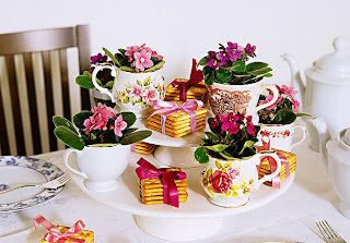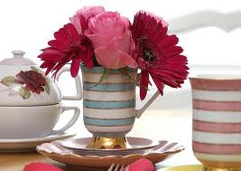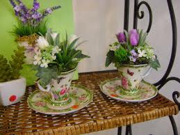 Sou fascinada em arranjos feitos em xícaras, bules, copos e em outras coisas que a sua imaginação e criatividade levar. Sabe aqueles utensílios que você não usa mais ou acha que eles estão velhos? Então, eles podem se transformar em objeto de decoração lindíssimos. Já vi arranjos em xícaras decorando chás de bebês e casamentos. Garimpei algumas imagens na net: