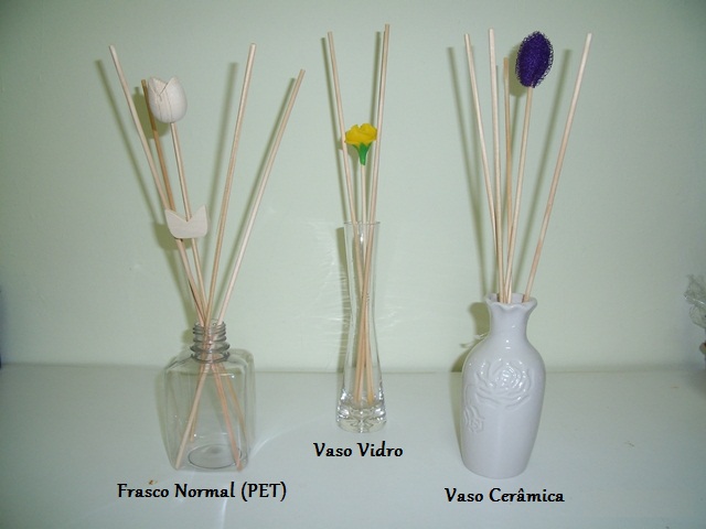 O aromatizador que escolhi foi o de varetas, acho que dependendo do vaso, ele servirá como objeto de decoração. Pode-se reciclar vasos e decorá-los conforme sua criatividade: