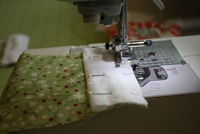 Alfinete os dois lados da meia, direito com direito e costure.Picote ou passe zig-zag nas bordas.