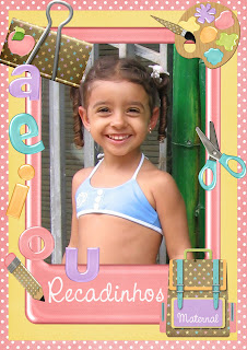 Personalizei etiquetas para o material (muitos!!!!) e para os 2 livros. Depois que conheci o photoshop, comecei a personalizar tudo. Comprei o kit School Days no just so scrap e fui fazendo alterações e acrescentando alguns elementos em páginas que ja vem prontas.