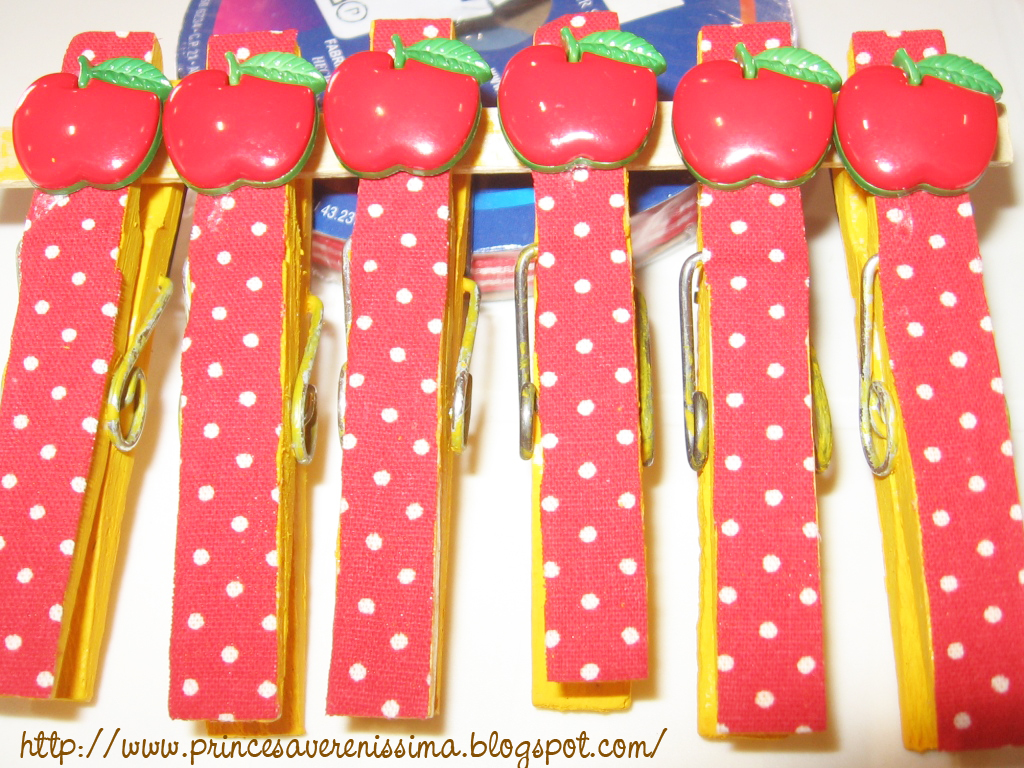 Para fazer os pregadores é muito fácil, basta desmontá-lo, pintar com tinta pva, passar termolina leitosa no tecido para não desfiar, colar o tecido com cola cascorez e finalizar com um botão da sua preferência colando-o com cola quente:
