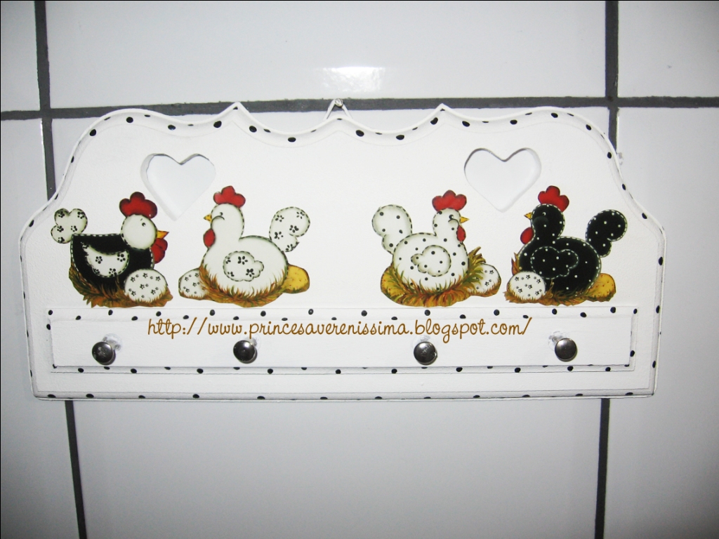 Tem um bom tempo que comprei um porta chaves para minha cozinha, não aguentava mais ver as chaves espalhadas pela casa, mas nunca tinha tempo para pintá-lo, acho que estava sem inspiração mesmo, enfim, resolvi fazê-lo: